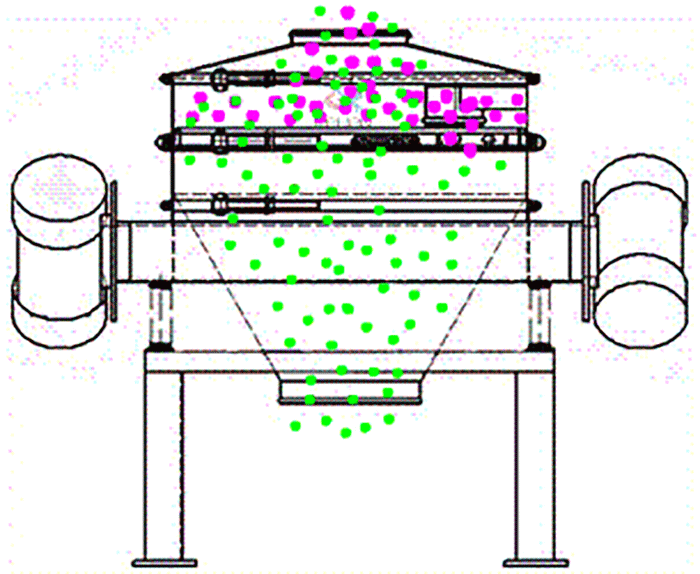 直排篩的原理是通過(guò)振動(dòng)源的作用使物料在篩面做三維運(yùn)動(dòng),這種運(yùn)動(dòng)方式可以使結(jié)塊物料散開(kāi),快速的通過(guò)篩網(wǎng)。精細(xì)物料直接由下部排出,雜物粗料則通過(guò)排渣出料口排出。