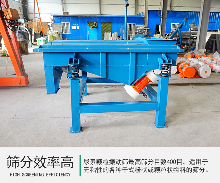 尿素顆粒振動篩最高篩分目數(shù)400目,適用于粒度在0.074-5mm,含水量小于7%,無粘性的各種干式粉狀或顆粒狀物料的篩分,給料粒度不大于10mm,非常適合對尿素顆粒進(jìn)行分級除雜。