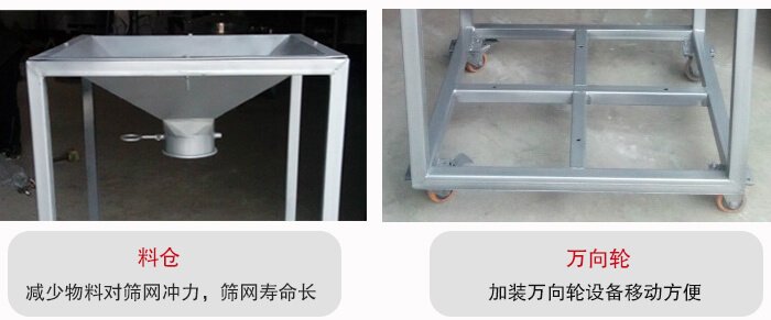 移動(dòng)式振動(dòng)篩又叫振動(dòng)篩料倉一體機(jī),底部加裝萬向輪,可360度旋轉(zhuǎn)移動(dòng),主要應(yīng)用于篩分場所不固定的環(huán)境,便于用戶移動(dòng),滿足不同地點(diǎn)的工作需要。通過調(diào)節(jié)料倉中的蝶閥從而控制物料進(jìn)入振動(dòng)篩的流量,然后振動(dòng)篩進(jìn)行篩分作業(yè),本品的特點(diǎn)間歇性加料,不用工人不間斷投料節(jié)省人工,蝶閥控制流量大小能提高篩分精度。