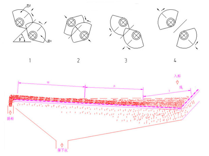 1,為了適應(yīng)不同尾礦性質(zhì)差別,本篩振幅可調(diào),方法是調(diào)整主副偏心塊夾角,從而滿(mǎn)足不同性質(zhì)尾礦的脫水效果?!?/p>