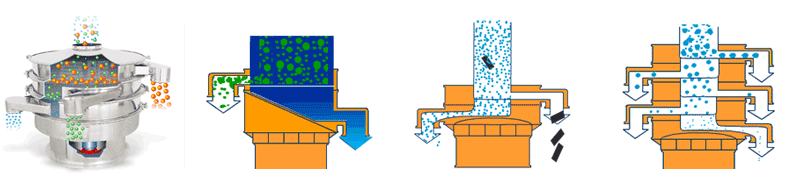 | 應(yīng)用 | 要用于物料原料的篩分和成品的最終生產(chǎn)檢驗(yàn),可以去除產(chǎn)品中的結(jié)塊和污染物,一次操作最多可提供5級分級。 | 適合高粘性、高靜電細(xì)粉,篩分精度可以提高80%以上,產(chǎn)量提高2-5倍。 | 模擬人工篩分的動(dòng)作,產(chǎn)生了水平和投擲的三維滾動(dòng)運(yùn)動(dòng),適用于500目以內(nèi)的細(xì)粒狀物料,篩分精度提高了90-95%,產(chǎn)量是圓形振動(dòng)篩的5-10倍。 | 適合一般的粗略篩分或除雜,的進(jìn)、出料口設(shè)計(jì)在同一垂直方向上,這樣會(huì)加快物料的排料速度,處理量是普通圓形振動(dòng)篩的2-5倍。 | 經(jīng)常用在液體過濾行業(yè),可去除液體或懸浮物中存在的不需要的顆粒,當(dāng)然也是可以作為粉末除雜??捎迷谔幚砹枯^小的工廠或小型作坊。 |