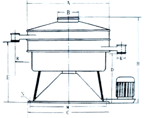 圓形搖擺篩主要由進(jìn)料口、上蓋、觀察孔、篩框、密封圈、出料口、網(wǎng)架、束環(huán)、主樞軸總成、調(diào)整塊、彈簧、主軸總成、皮帶輪、底座、檢查孔、電機(jī)等部分組成。